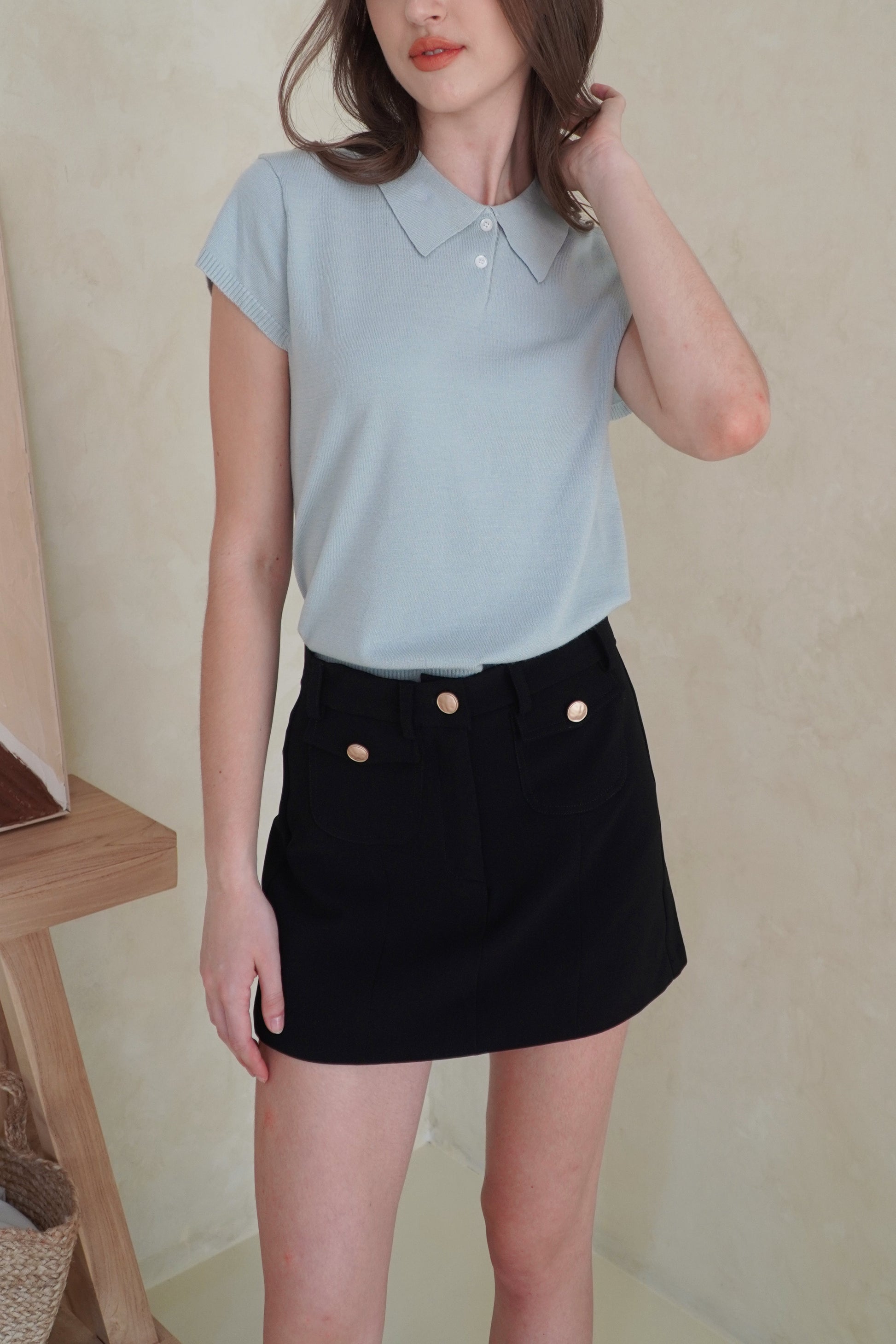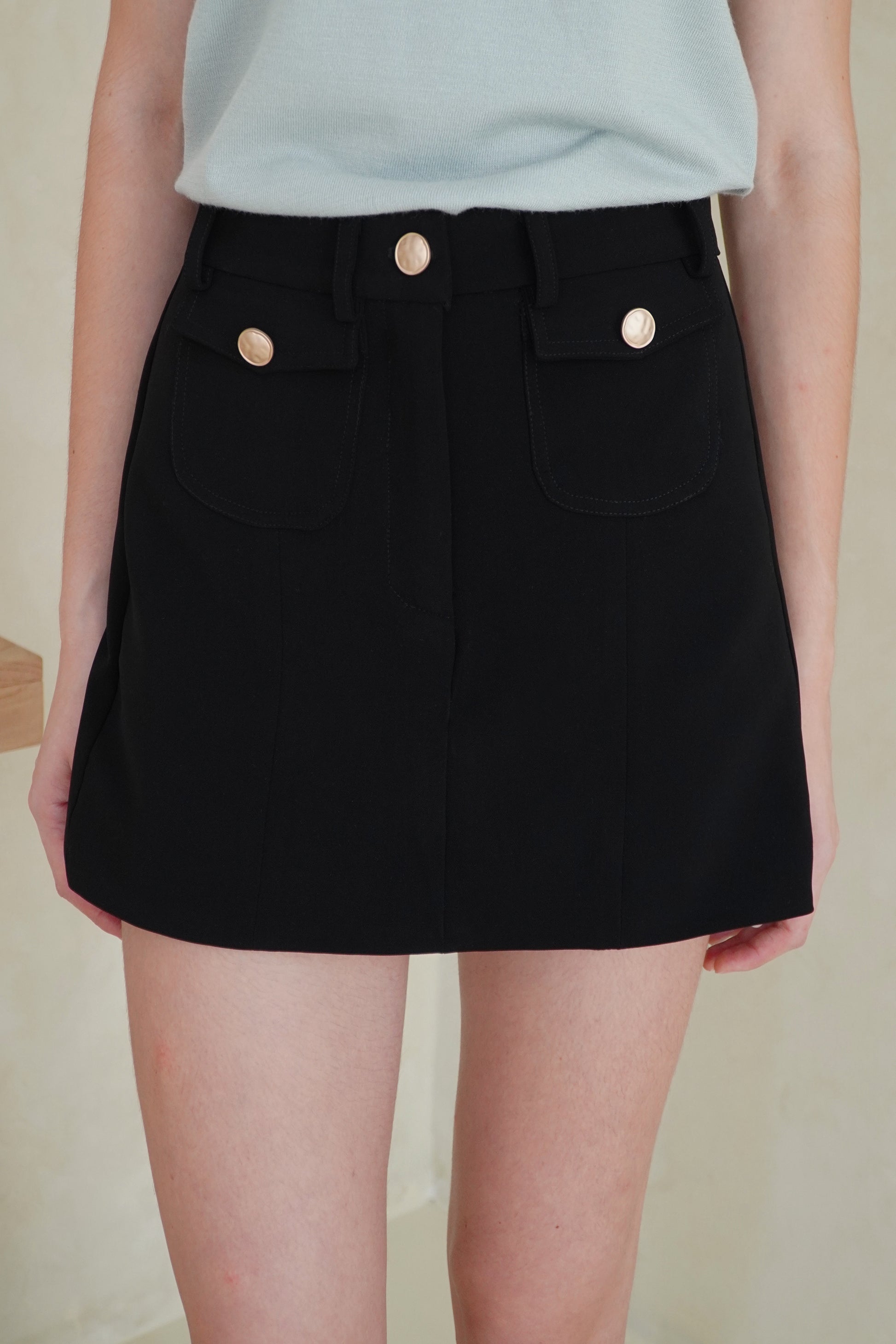 You can find thousands of skort out there, but there hasn’t been something quite like Coco. Designed with chic small front pockets, gold buttons, and built-in pants inside, this mini skort suits almost all kinds of tops and elevates any look. The medium-weight semiwool also give this piece just the right amount of structure.