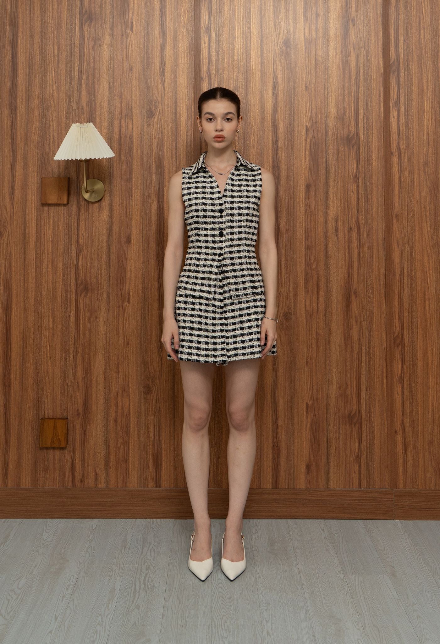 Incorporating tweeds into our summer wardrobe lineup. A simple halter tweed top with casual shirt collar and V-neckline, cut in a streamlined silhouette that’s both flattering and chic. Crafted from premium multi-colored tweeds that make this top all the more unique. Transition smoothly from brunch with your favorite girls to that long-awaited dinner date in our Frida Tweed Top, that can be paired prettily with its soulmate – Kahlo Tweed Skort. Model Is wearing size S