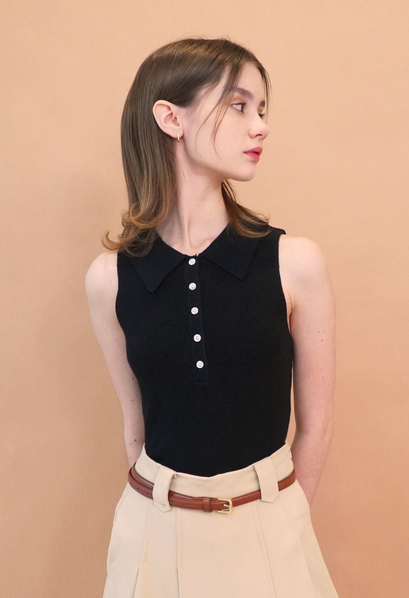 A sleeveless polo top that’s so soft we want to snuggle in it. Super stretchy and fits your body just nicely, a top that can be styled according to your taste; be it preppy or classy.