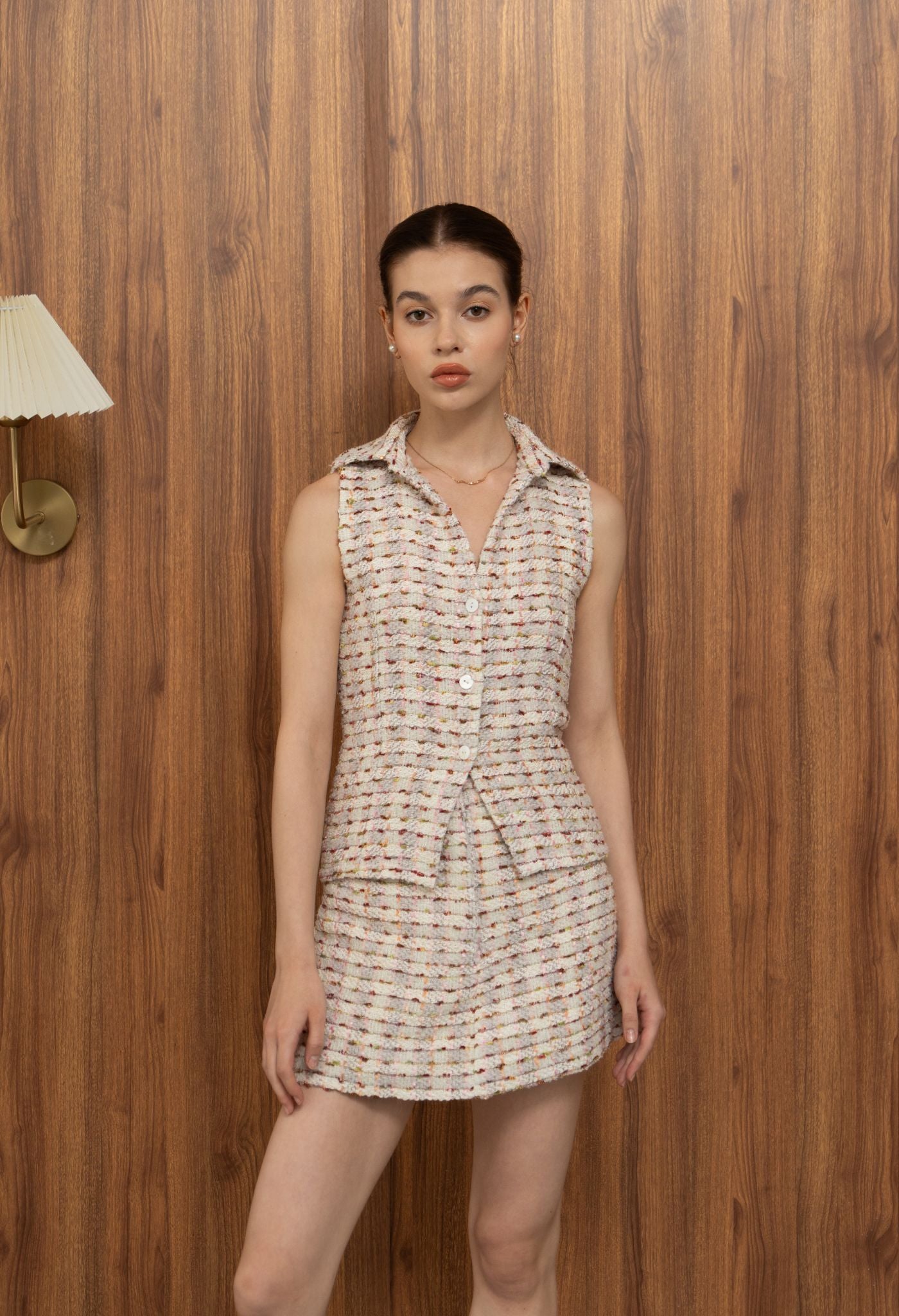 Meet Kahlo Tweed Skort – your next go-to bottom for when you’re too lazy to dress up, but still want to look cute. Cut in a classic A-line mini skort silhouette, this pretty piece can be worn as a set with its soulmate, Frida Tweed Top, or with any simple tees and tops in your wardrobe. Perfect for those who want to look fun (and a little bit flirty), but still modest with the built-in shorts. (belt included)