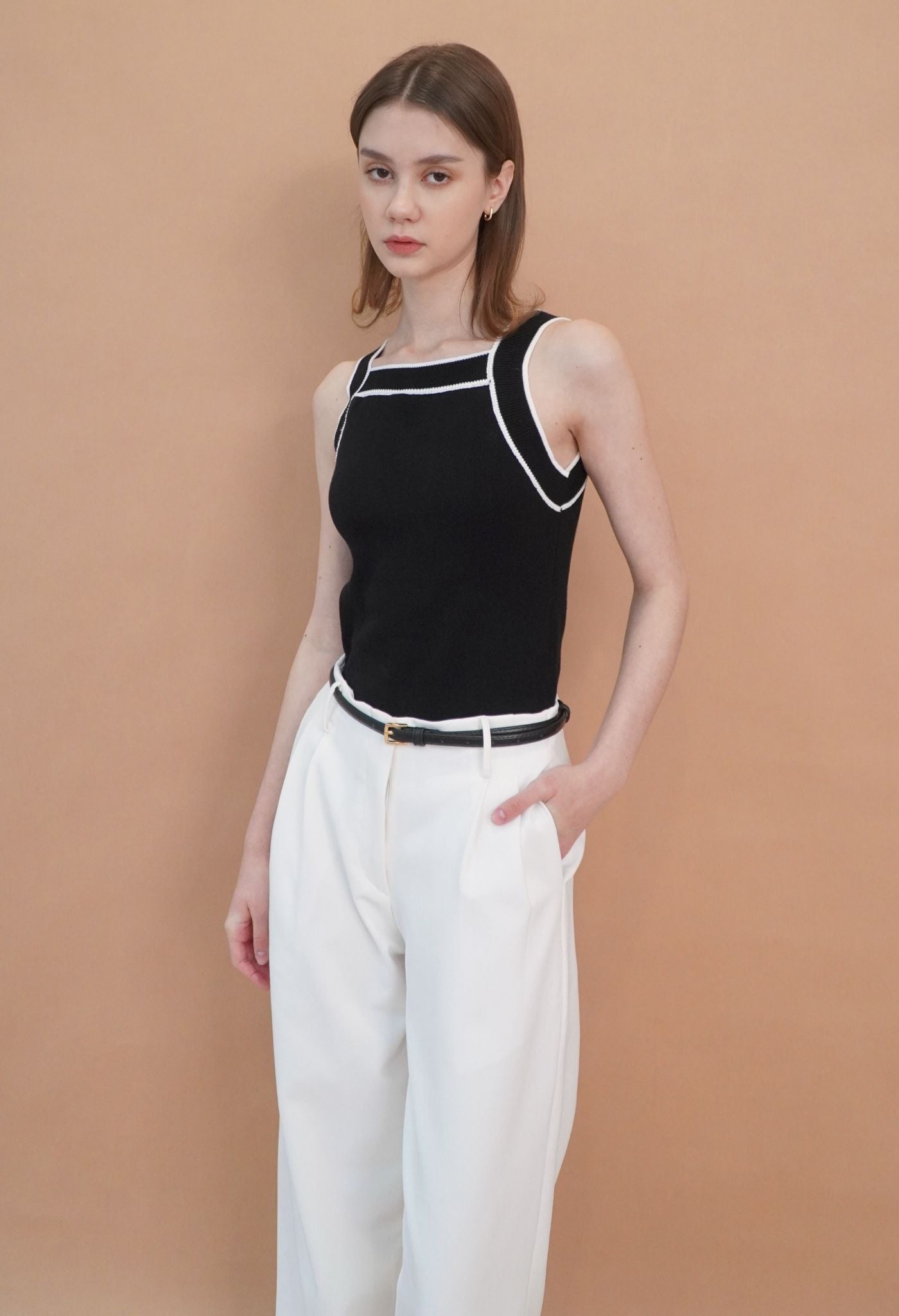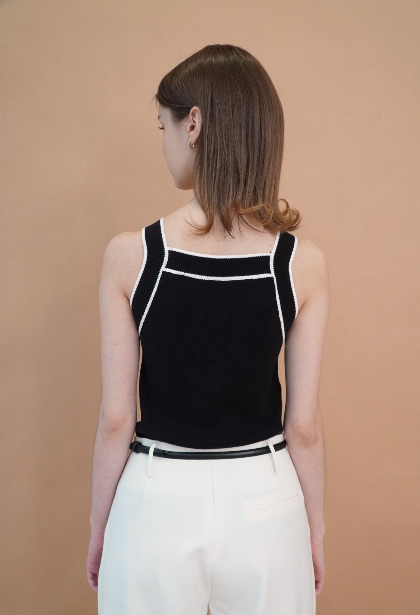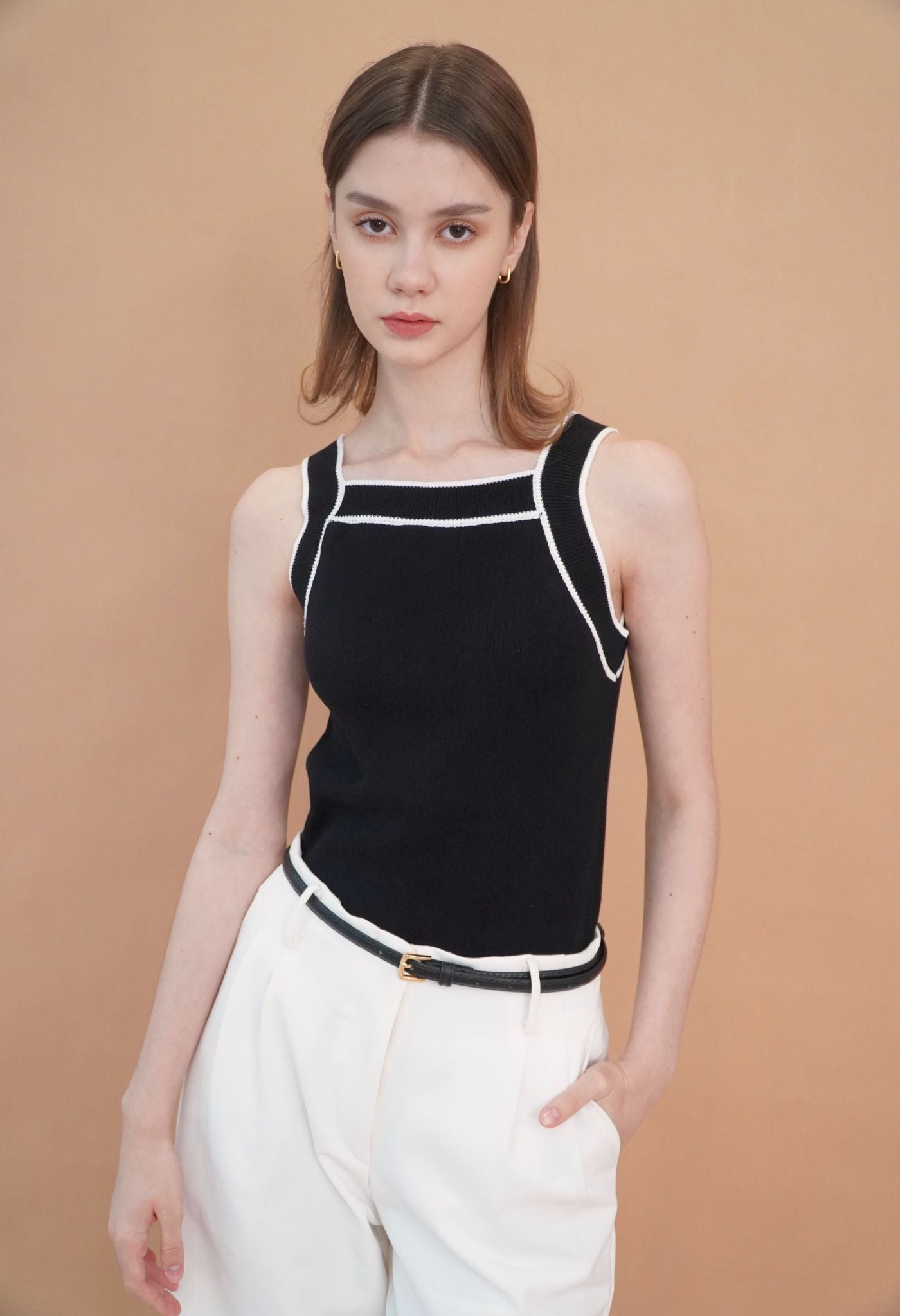 The classic versatile tank, but with a spin. Knitted from 100% cotton soft yarn to achieve a stretchy, slightly-hugging fit like this one. The contrasting lines at the square neckline instantly elevates any bottom you’ve decided to wear for the day.